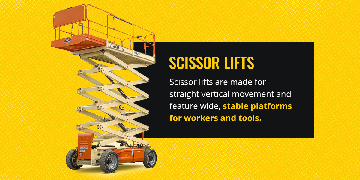 Scissor lifts are made for straight vertical movement and feature wide, stable platforms for workers and tools. Most scissor lifts have working heights between about 10 and 40 feet, making them a reliable choice for jobs that need steady access at moderate heights.